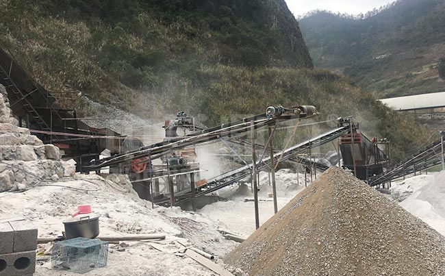 中譽鼎力承建的這條石料生產線位于廣西南寧,2017年7月建成,一小時的產量可達100方,一方約等于1.5噸,因此時產量為150噸。從產線建成運行至今,在良好的定期維護保修中,沒有出過大的故障,僅更換過設備的易損件。根據產線破碎的物料硬度、濕度等特性,采用了錘破碎機加反擊破碎機的配置組合,使其能夠的完工破碎處理工作,在除去皮帶機等輔助設備,生產線整體的耗電量在317.7千瓦。