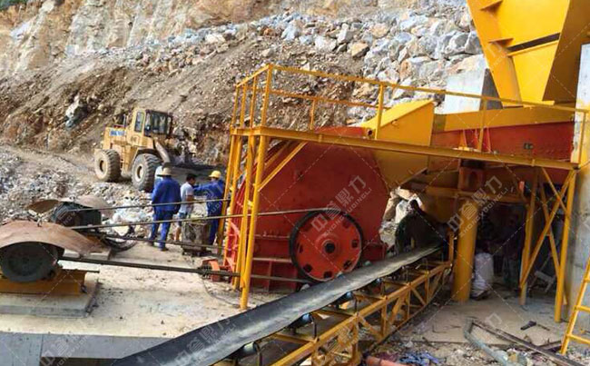 鼎力為我們配置的重型錘式破碎機適合我們當?shù)厥沂钠扑椋梢赃_到“一破成型”的目的。