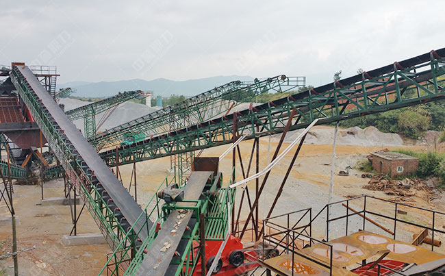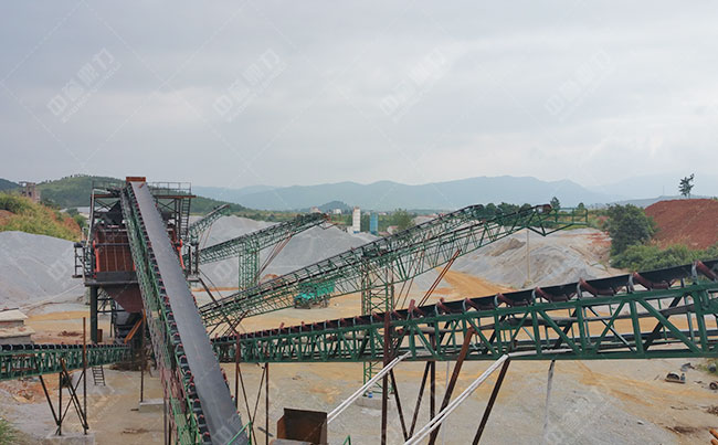 主要設備:振動給料機、重錘式破碎機、制砂機、圓振動篩、皮帶輸送機。