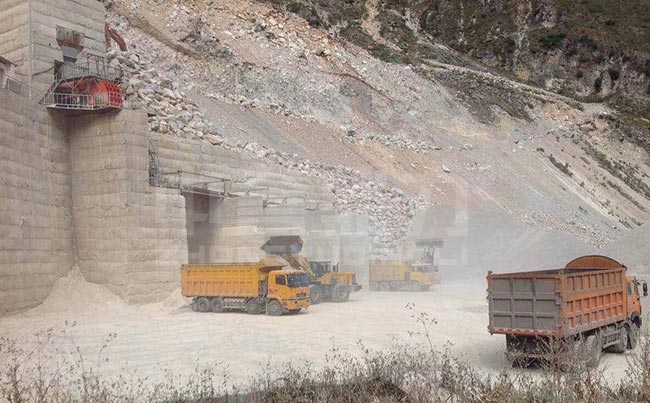這條石料破碎生產線位于云南麗江,由中譽鼎力承建,于2016年12月完工。該生產線產量相對較小,因此主要有給料機加上單臺錘式破碎機構成。生產線整體依托地形建設,大致的流程為原料通過給料機送至錘式破碎機,在經過破碎處理后,經由振動篩篩分,不同粒度石料堆放在底部的簡易料倉中。